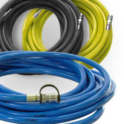 Mangueiras completas com ers tem um diâmetro de 9mm (3/8”). Disponibilizadas com engates rápidos de segurança, em latão cromado, facilitando a união dos respiradores com as mangueiras e as suas respectivas unidades de abastecimento de ar comprimido.